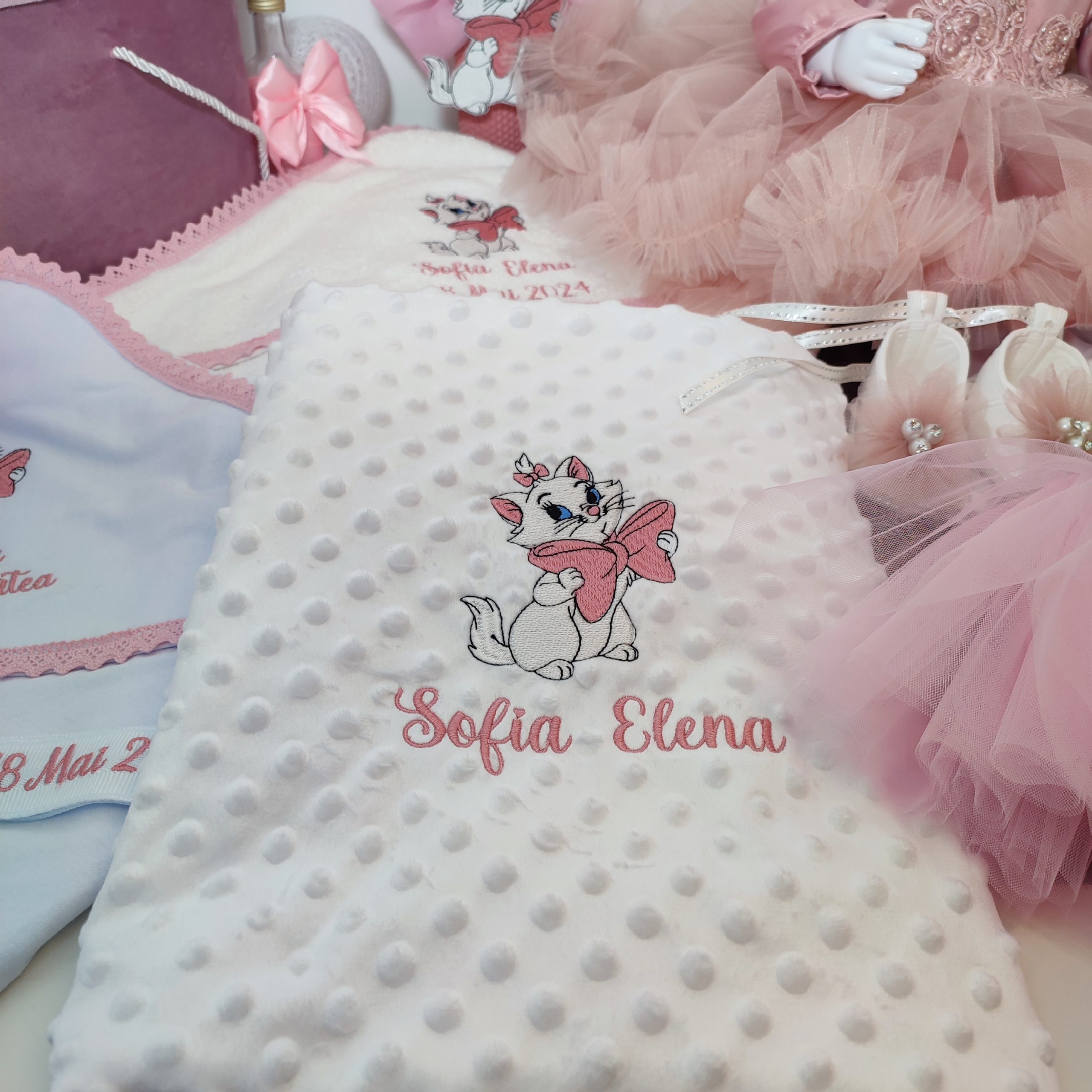 Fabricat din materiale fine și plăcute la atingere, trusoul asigură atât frumusețe estetică, cât și confort. Designul clasic, cu accente discrete și elegante, îl transformă într-o alegere versatilă, potrivită pentru orice tematică de botez.