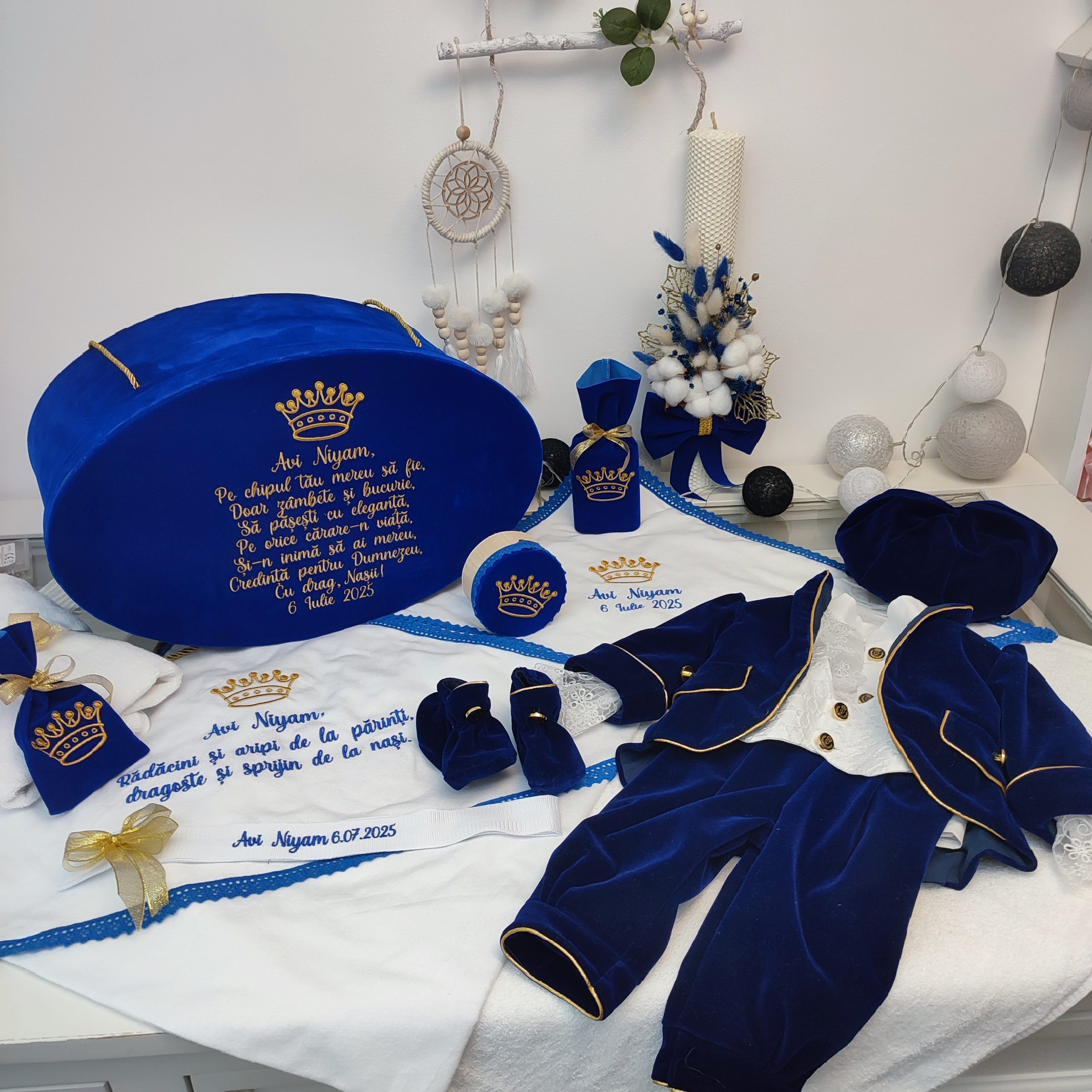 Trusou clasic – set complet pentru botez, elegant și rafinat, realizat din materiale de calitate, cu detalii delicate și finisaje premium.