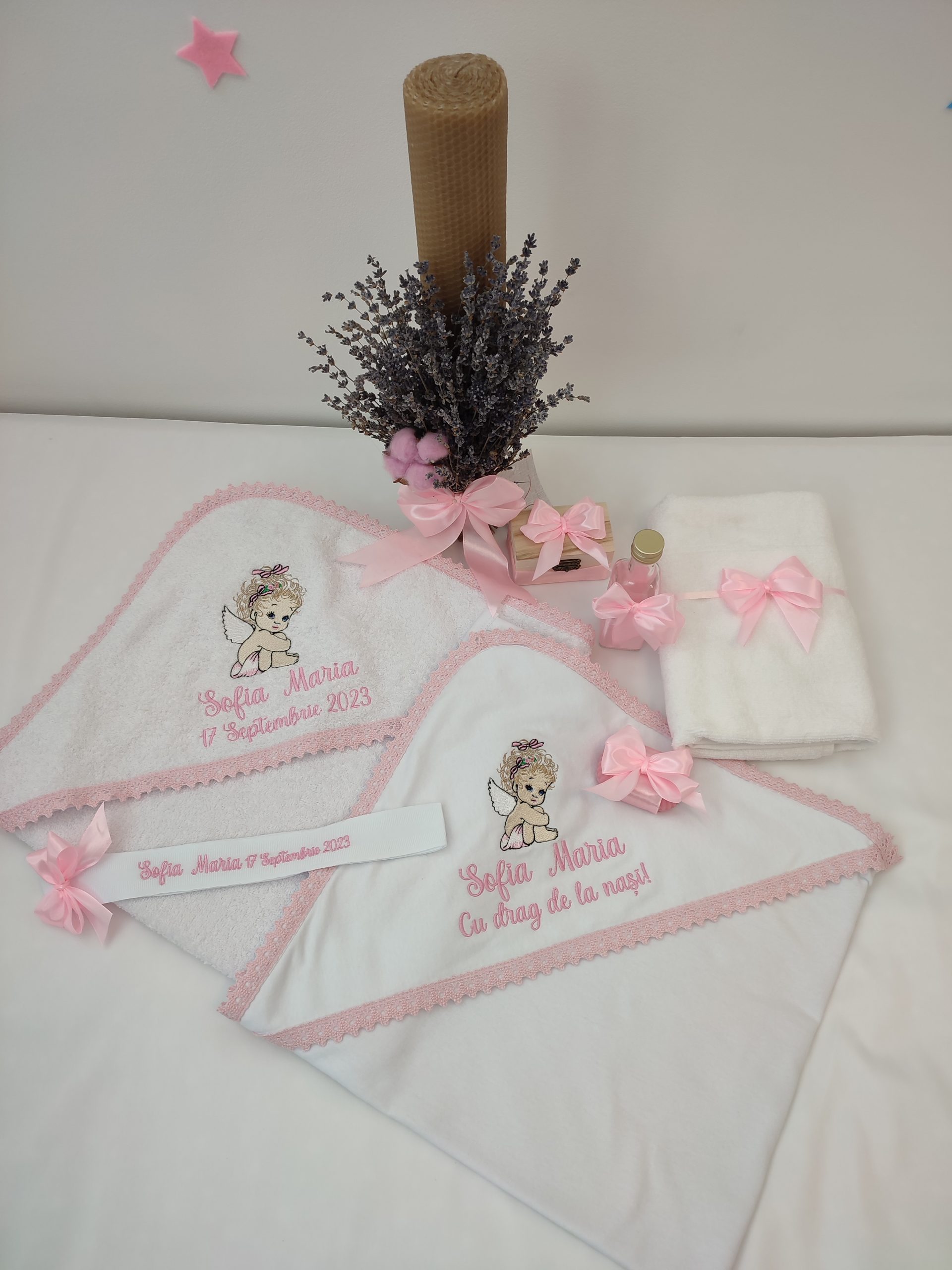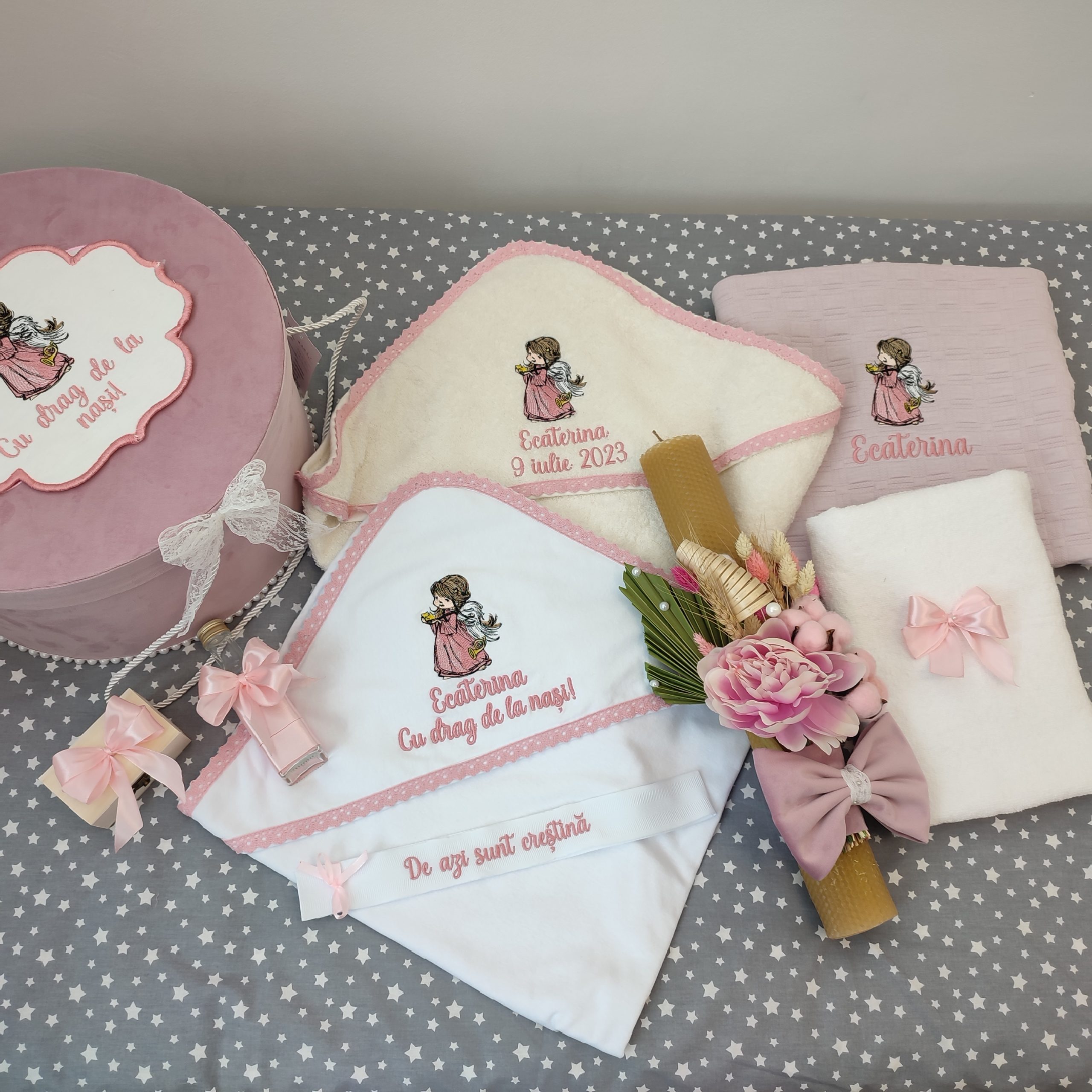 Trusou clasic – set complet pentru botez, elegant și rafinat, realizat din materiale de calitate, cu detalii delicate și finisaje premium.