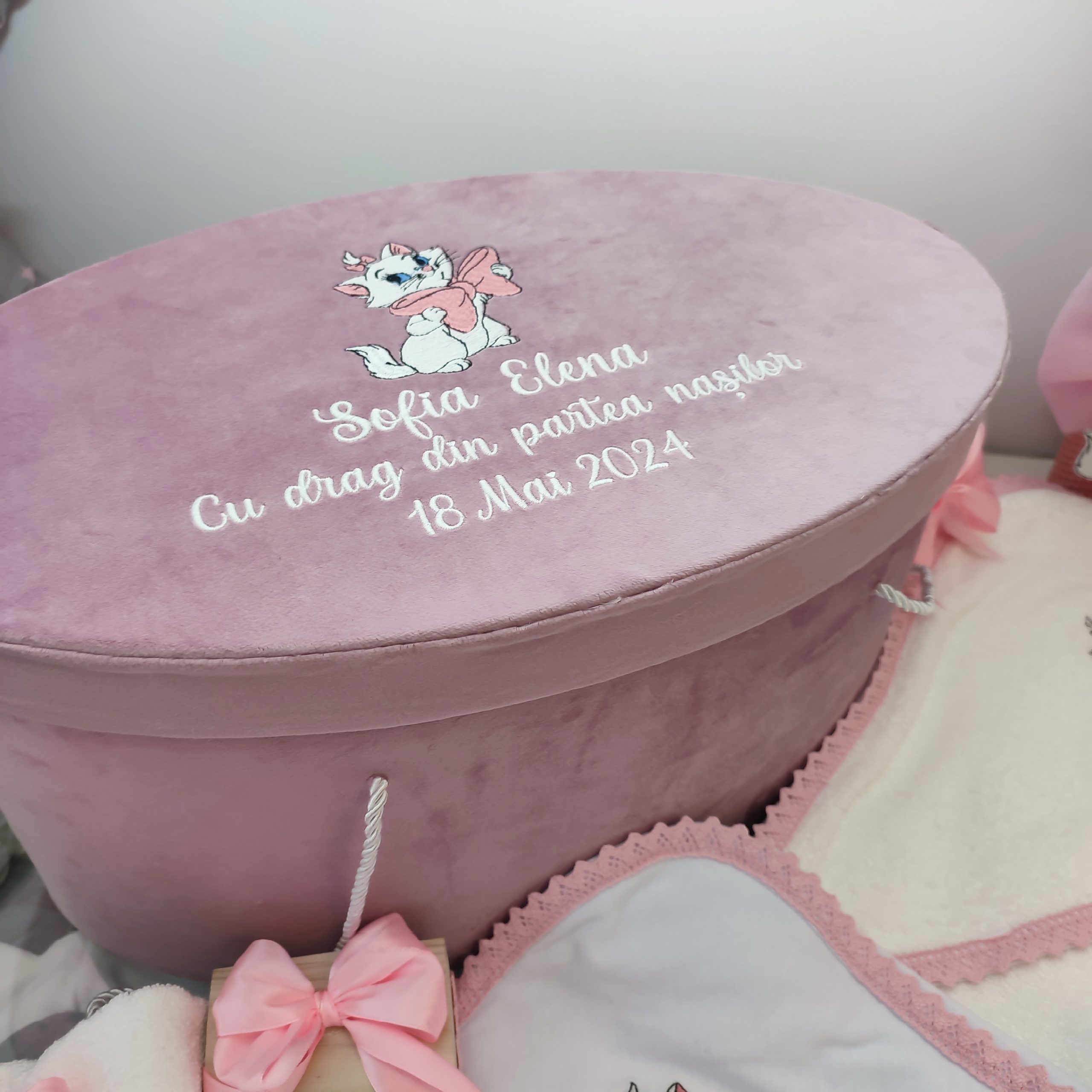 *Lumanarea (290lei), rochia (310lei), papucei (65 lei), patura minky (145 lei), Cutie trusou ovala/rotunda 235 lei se achizitioneaza separat, fotografiile in care apar aceste produse, fiind doar cu titlu de prezentare.